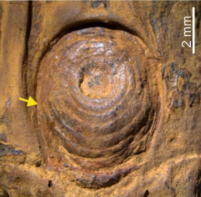 The featured image is an enlarged microscopic view of the 37,000-year-old fossil bamboo showing preserved bud (yellow arrow).
